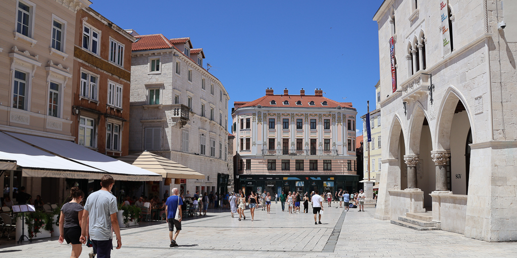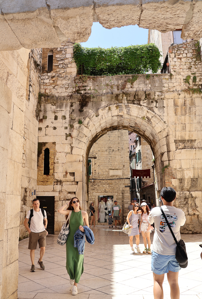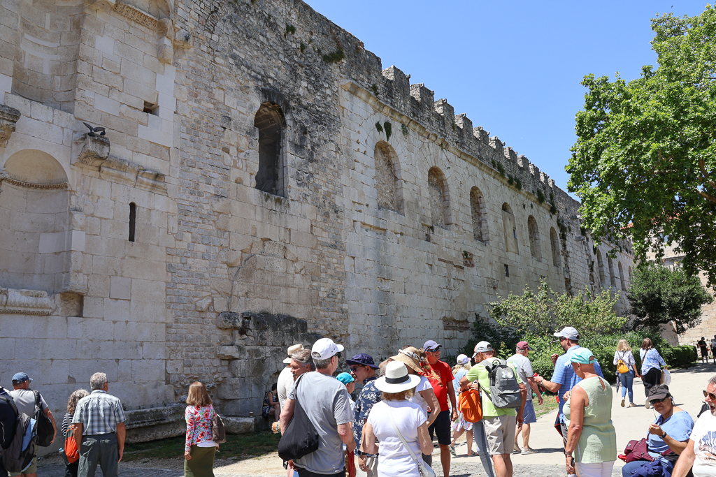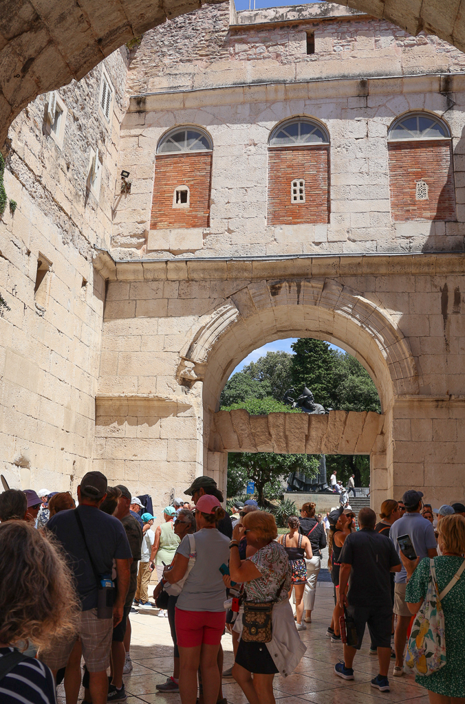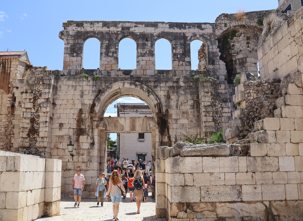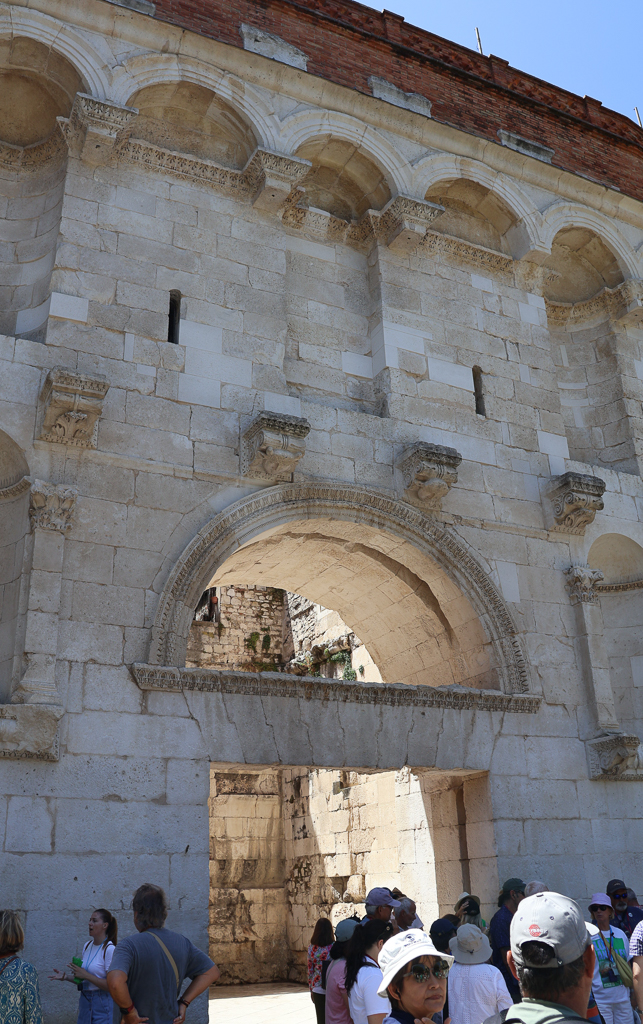 스플맅 항구는 Diocletian’s Palace를 가까이하고 식당과 가게들이 많아 상당히 북적거린다. 스플맅에 크루즈로 오면 따로 교통편이 필요 없으니 100% 이곳을 들른다고 보아도 무방하다. Diocletian’s Palace는 3세기 당시 로마의 황제 디오클레티아누스(Diocletianus)를 위해서 4세기초에 완공된 궁전이다. 디오클레티아누스는 로마의 속국이었던 달마티아에서 태어나 로마군 장교로 승진하며 황제까지 된 인물이다. 그는 동료 장군인 Maximianus(막시미아누스)와 동, 서로마 제국으로 분권 통치를 하여 위기에 빠진 로마제국의 혼란을 수습하고 황제 중심의 통치체제를 회복하였다. Diocletian’s Palace는 궁전과 병력이 주둔할 수 있는 요새를 복합적으로 지은 4각형 형태의 건축물이다 – 전형적인 요새와 같이 각 면에 성문이 있고 각 모퉁이에 탑이 있다. 동문과 서문을 잇는 중앙도로는 성채를 남북으로 나누고 있다. 남쪽은 황제의 처소로 종교적 건축물이 있고 화려하며 북쪽은 군인과 하인의 거주처로 실용적으로 설계되었다.