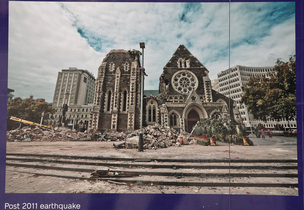 Christchurch Cathedral은 1864년부터 1904년까지 40여년에 걸쳐 건축된 교회이다. 여러 차례 지진으로 피해를 입었지만 1983년에 Category I Historic Place로 지정되었다. 2011년 지진으로 첨탑을 위시해서 교회건물이 대규모 손상을 입고 말았다. 이에 교회측에서 교회를 허물고 새로운 건물을 지으려 했지만 주민들의 강력한 반대에 부딪혔다. 2017년에 결국 교회측은 기존 건물을 복원하기로 결정하기에 이르렀다. 이러한 가운데 교회 주변은 봉쇄되었지만 아직도 관광객들이 찾는 곳이다.