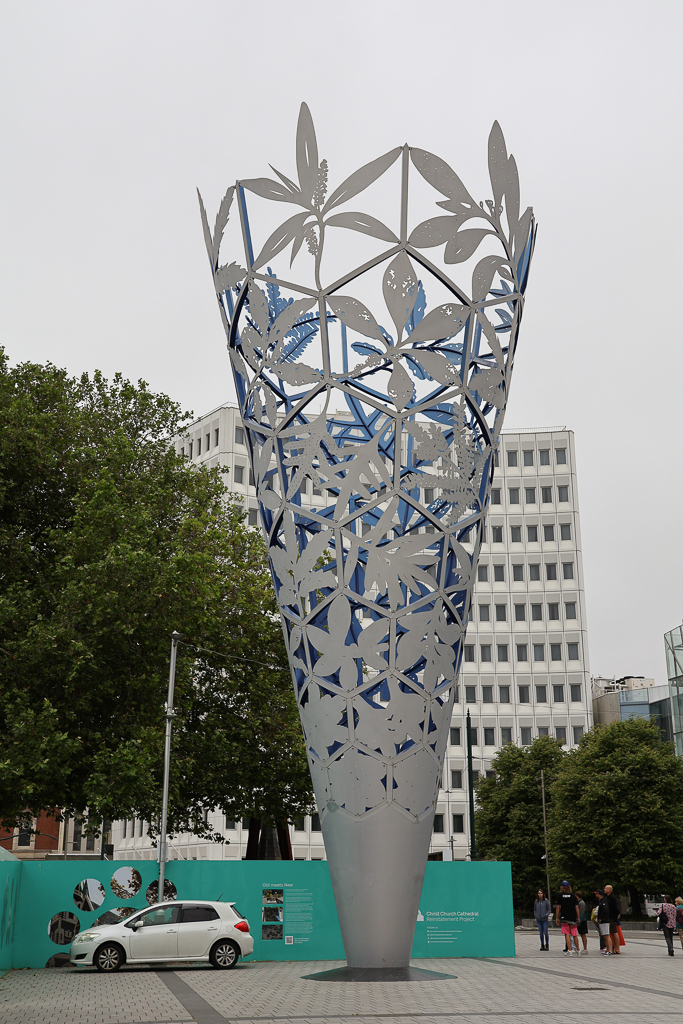 Godley 동상과 공사 중인 Christchurch CathedralGodley 동상 – Christchurch Cathedral 앞에 있는 Canterbury Association의 창립을 주동하였고 이 일대에 Canterbury 정착지를 세운 John Robert Godley의 동상. 2011년 지진으로 파손되었고 2015년에 복원되었다.울타리 너머에 보이는 공사 중인 Christchurch Cathedral가림막에 걸려있는 2011년 지진 후의 교회 사진Canterbury 지역의 용수권(用水權)을 중앙정부가 제한한 것에 대한 항의로 2010년에 Christchurch Cathedral 앞에 세운 돌무지인데 후에 마혼(Mahon)의 돌무지라는 별명이 붙여졌다 – 관련 기사마혼의 돌무지에 있는 돌 중 하나Chalice Sculpture (성배 조형물) – Christchurch Cathedral 옆에 있는 Neil Dawson의 작품으로 Christchurch 설립 150주년 및 21세기를 기념하여 2000년에 세워졌다Citizen’s War Memorial – Christchurch Cathedral 옆에 1937년에 세워진 전쟁 추모비 – 관련 기사Cathedral Square 전차 정거장 – 표 한장으로 여러 정거장에서 타고 내릴 수 있는 관광용 전차 – 관련 websiteAvon River – Worcester와 Cambridge Terrace가 만나는 지점Robert Falcon Scott 대리석상 – 영국 해군 장교로 Christchurch를 기지로 남극 탐험대를 이끌었다. 천신만고 끝에 남국에 도달했지만 노르웨이의 아문센 보다 34일 늦었다. 아깝게도 1912년 귀환 길에 대원들과 함께 사망하고 말았다. 이 대리석상은 그의 부인 Kathleen이 이태리 Carrara에 있는 대리석 광산에 직접 가서 돌을 고르고 조각하여 뉴질랜드로 들여왔다. 1917년에 지금의 자리, Worcester Blvd와 Oxford Terrace가 만나는 지점에 세워졌는데 2011년 지진으로 파손되었고 2017년에 복원되었다.Worcester Blvd 풍경 – 고전적 건물과 전화부스, 그리고 대조가 되는 배경에 있는 현대적 건물Christchurch Art Gallery – 2003년에 내진 설계로 건축되어 2011년 지진 때 소규모 피해를 입었고 당시 시민들의 대피소로 사용되었다Edwards + Johann, Slightly More Active Than Rocks, 2024년Petrus van der Velden, Mount Rolleston and the Otira River, 1893년, 유화Riki Manuel, Poumanawhenua, 1985년, 목각 – Pouwhenua는 경계 또는 중요한 장소를 표시하는 목각기둥을 뜻한다. 이 목각기둥은 마오리의 Kai Tahu족과 Nagati Porou족의 조상들이 연결되어 있었음을 보여주고 있다.Robyn Kahukiwa, 2023년, 아크릴화 – ‘마오리족은 영국에 주권을 내어주지 않았다’는 제목을 그림에 포함시켰다. 주권에는 영토, 언어, 풍습 등 모두가 포함된다.Christchurch Art Gallery 2층에서 본 로비와 앞 광장의 모습Michael Parekowhai, Chapman’s Homer, 2011, 동상 – Christchurch Art Gallery 앞 광장에 있는 피아노를 올라탄 황소, 2011년 지진 후 희망과 복원력(resilience)을 상징하였다.