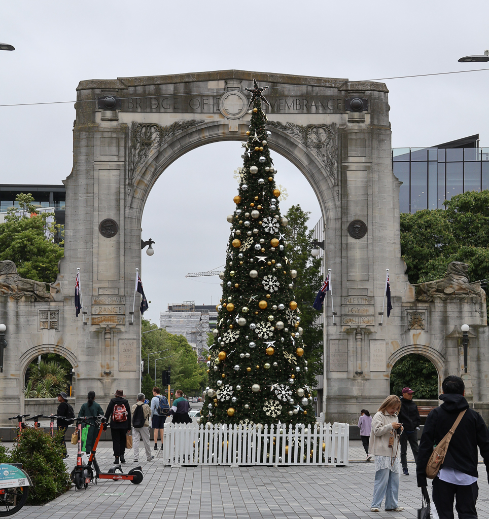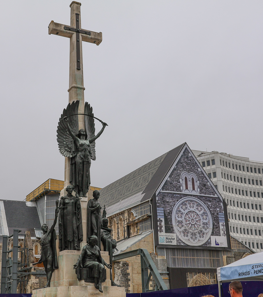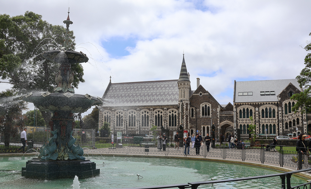 Peacock Fountain – 돌핀, 백로, 백합 등으로 장식된 분수로 이 건축에 재정적인 지원을 한 사업가의 이름으로 명명되었다 – 관계 기사William Sefton Moorhouse 동상 – Canterbury 지역 감독관을 역임했고 Lyttelton 항구와 Christchurch 도심을 연결하는 철로 터널 건설을 추진하였다. 이 터널은 현재까지 운용되고 있는 뉴질랜드에서 가장 오래된 철로 터널이다.Peacock Fountain과 길 건너에 보이는 Arts CenterArts CenterArts CenterArts CenterVictoria 여왕 동상 – Armagh St.과 Colombo St. 모퉁이에 있는 Victoria SquareJames Cook 동상 – 영국 탐험가로 태평양과 대서양을 아우르는 항해 및 지도를 만들었고 뉴질랜드 항해일주를 최초로 성공하였다. 2024년에 빨간색으로 가슴에 X표를 치는 vandalism을 당했는데 이를 지우려고 설치한 지지대를 이용해서 코까지 갈아버렸다. 코는 복원이 가능했는데 X표는 동상에 손상 없이 제거하기가 불가능해서 아직도 자국이 남아 있다.Ferrier Fountain – Victoria Square에서 Avon River 건너편에 있는 민들레 씨 모양의 분수와 Christchurch 시청 건물의 일부Christchurch Gondola Summit Station – Christchurch 시가지와 Lyttelton 항구가 한눈에 보이는 절경을 기대했는데 날씨 때문에 망했다. 좀 기다렸지만 날씨가 개기는 커녕 비까지 내리기 시작하니 시간은 없고 속수무책이다.Bridge of Remembrance – 원래 있던 다리에 세계1차대전 전몰장병을 추모하기 위해서 1924년에 아치가 더해지며 ‘추모의 다리’라고 명명되었다. 후에 2차대전, 보르네오, 한국 및 월남 전에서 희생된 장병들의 이름도 추가되었다.Riverside Market – Bridge of Remembrance 동쪽에 있는 상점거리. Riverside Market 안에는 중식과 일식을 포함한 십여 가지 음식점이 있는데 쉬어 가기에 안성맞춤이다.