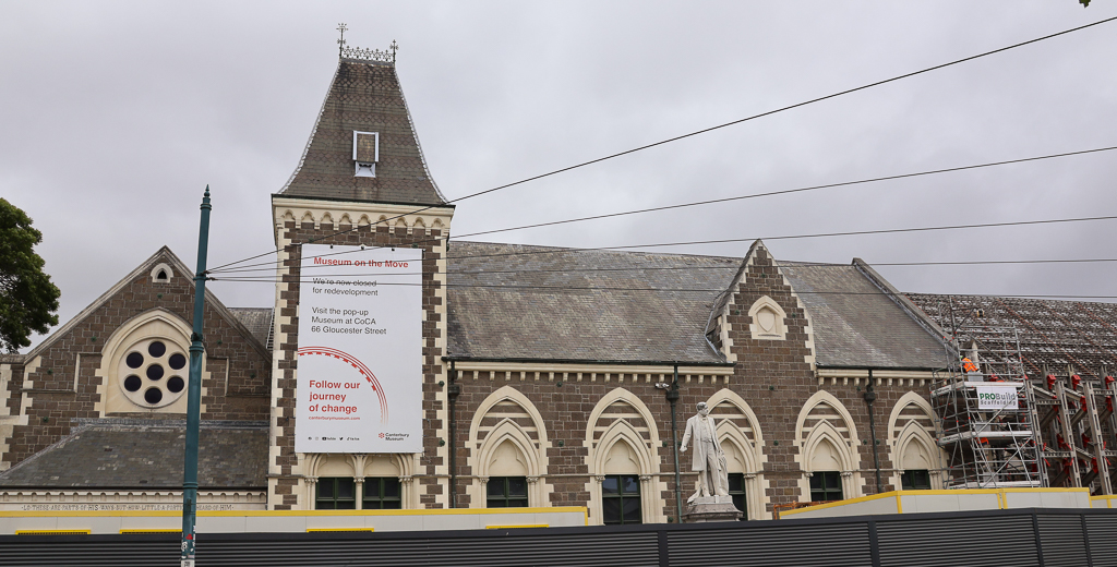 Canterbury Museum은 Worcester 길이 끝나며 Botanic Garden으로 가기 전에 왼쪽편에 있다. 1870년에 개관한 박물관은 고딕 복고풍의 건축물로 Category I Historic Place로 지정되었다. 개축과 증축을 거듭하였으며 2020년에 재개발이 결정되었다. 2023년에 소장품들을 옮기고 본격적으로 공사가 시작되었다. 우리가 방문한 2024년 11월에는 가림막으로 가려져 있고 공사가 한창 진행 중이었다. Christchurch Art Gallery 바로 북쪽 Gloucester St.에 있는 pop-up 전시관에서 극히 일부의 소장품을 볼 수 있었는데 거기도 공사 중으로 소음과 먼지가 심해서 금방 나왔다.
