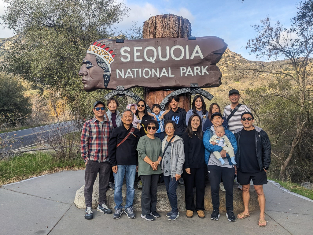 아이들이 방 6개의 3층짜리 캐빈을 빌려서 세쿼이아 국립공원을 이십여 년 만에 가게 되었다. 조카를 포함한 아이들끼리 서로 연락하며 은밀히 진행하여 보름쯤 전에야 계획을 알게 되었다. 그래서 남가주에 사는 우리 3남매 가족들이 모두 같이 가게 되었다. 겨울이라 눈도 제법 쌓여 있어 해발 6,200 ft 정도부터 chain을 장착하여야 하며 지선도로들이 차단되어 있어 때문에 깊이 들어가지는 못했다. 또한 손을 타는 손주들이 있어 hiking은 하지 못했지만 3대가 한자리에 모여 아주 즐거운 시간을 가졌다. 공간이 넓어 서로 다른 층에서 아이들은 아이들끼리 어른들은 어른들끼리 모여 수다 떨고 많이 만들어서 먹고, 성탄과 망년까지 지내며 가족의 중요함을 다시 느낀 시간이었다.