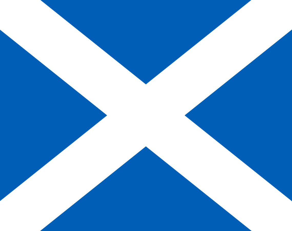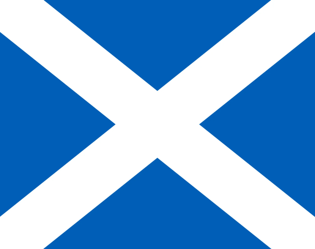 St. Andrew’s Cross 또는 Saltire라는 별명이 있는 스코틀랜드의 국기는 푸른색 바탕에 흰색의 대각선 십자가로 되어있다. 스코틀랜드는 9세기경부터 이 대각선 십자가를 국기에 사용한 것으로 알려져 있다. 이 흰색의 대각선 십자가는 17세기초부터 잉글랜드의 St. George’s Cross와 함께 영국 국기에 삽입되었고, 후일 아일랜드의 St. Patrick’s Cross가 더해져 영국 국기가 완성되었다.