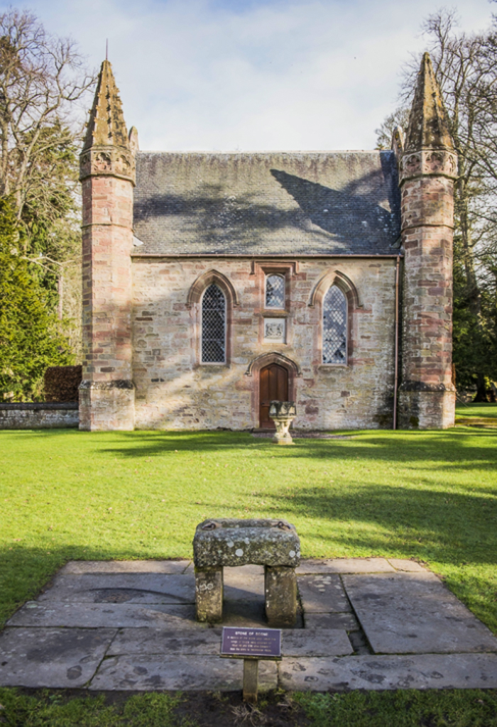 9세기경부터 스코틀랜드 왕의 대관식은 스쿤의 바위(Stone of Scone 또는 Stone of Destiny)라 불리는 직사각형의 사암에 앉아서 거행되었다. 이 바위는 야곱의 돌 베개였다는 전설도 있는데 Moot Hill에 있는 조그마한 예배실, Scone Chapel에 보관되었다가 대관식 때 꺼내어 사용되었다. 스코틀랜드의 초대 왕인 MacAlpin, 셰익스피어의 비극의 주인공 Macbeth 등을 비롯한 42명의 대관식이 여기에서 거행되었다. 13세기에 스코틀랜드와의 전쟁에 영국이 승리하며 스쿤의 바위는 영국으로 옮겨졌고 그때부터 영국 왕의 대관식도 이 바위에서 거행되었다. 1996년에 스쿤의 바위는 스코틀랜드로 반환되었고 에든버러 성에 보관되었으며, 2023년 찰스 3세 대관식을 위하여 영국에 대여되었었다. 현재 스쿤의 바위는 퍼스 박물관(Perth Museum)에 전시되어 있고 스쿤 팰리스에 있는 것은 복제품이다.