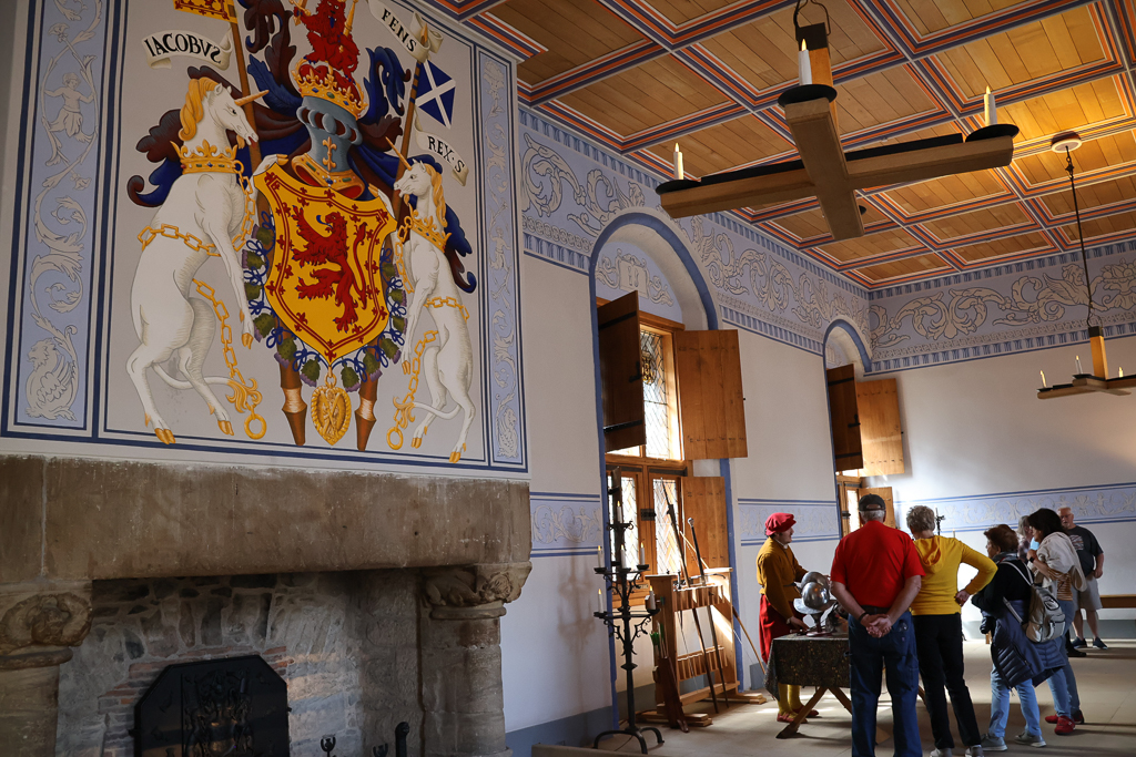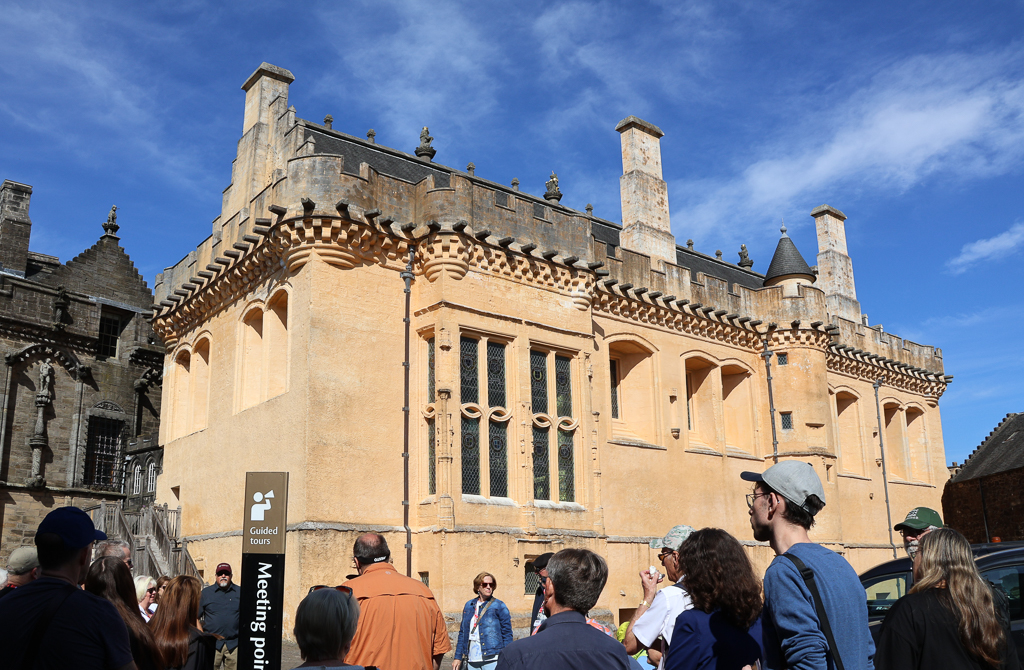 스털링 성 – 주차장에서 본 전경Robert the Bruce 동상 – 14세기초 1차 독립전쟁을 이끈 스코틀랜드 왕. 동상의 얼굴부분이 스코틀랜드 은행에서 발행한 ₤20 지폐에 사용되고 있다.Boer War Memorial – South African War라고도 알려진 대영제국과 남아프리카 보어 공화국과의 전쟁 추모비스털링 성 안뜰로 들어가기 위한 중간 성문Royal Palace – 오른쪽에 보이는 성 안뜰로 들어가는 마지막 성문Queen Anne Garden에서 본 Royal PalaceRoyal Palace 남쪽 벽에 조각되어 있는 석상Royal Palace 남쪽 벽에 조각되어 있는 석상Royal Palace 남쪽 벽에 조각되어 있는 석상Royal Palace 남쪽 발코니에서 본 Queen Anne Garden 일부와 남동쪽 외곽 성벽Royal Palace 동쪽 외관Royal Palace 동쪽 벽에 조각되어 있는 석상Palace Vaults – 지하 저장실Sterling Heads – 원래의 초상 목각들Sterling Heads – 원래의 초상 목각들Royal Palace 평면도Queen’s Outer Hall – 여왕을 만나기 위한 대기실Queen’s Inner Hall – 여왕 접견실 벽의 tapestry, The Hunt of the UnicornQueen’s Inner Hall – 여왕 접견실 천장 문양Queen’s Bedchamber – 여왕의 침실인데 잠은 옆에 있는 작은 방에서 잤다고 한다. 실제로는 중요한 귀빈을 접견했던 방이다.King’s Bedchamber – 귀빈 접견으로 사용되었고 잠은 옆에 있는 또 다른 침실에서 잤다. 여왕의 침실에 비해 단출하다.King’s Bedchamber에 있는 스코틀랜드의 상징 유니콘과 붉은 사자King’s Inner Hall – 벽난로 위에 있는 붉은 사자와 스코틀랜드 왕관, 천장에 Sterling Heads의 일부가 보인다.Sterling Heads – James 5세의 가계를 메달 형태의 초상 목각으로 제작하여 천장을 장식하였다. 현재 있는 것은 채색한 복제품.King’s Outer Hall – 의상을 갖춘 직원이 당시의 무기들을 설명하는 장면James 5세의 석상 – Royal Palace 남동쪽 모퉁이에 있다Great Hall – 중세기에 스코틀랜드에 세워진 비종교적 건물 중 가장 웅장한 것으로 꼽히며 르네상스 영향을 받은 첫번째 왕궁 건물로 여겨진다. 연회장이나 의회장으로 사용되었다.Great Hall의 Hammerbeam(들보의 일종) 천장James 4세의 문장Great Hall의 색유리 창Grand Battery – Great Hall 건너편 둔덕에 있는 포대로 River Forth를 향해 포진되어 있다Grand Battery 대포 중 하나포대에서 내려다본 Ballengeich Cemetery와 스털링 시 북쪽 마을King’s Old Building – 15세기에 James 4세의 궁으로 지어진 건물이며 16세기에 Royal Palace를 지을 때까지 사용되었다. 그후로 수비대의 막사로 사용되다 현재는 Regimental Museum – Museum of Argyll and Sutherland Highlanders로 쓰이고 있다.Chapel Royal – 12세기초에 세워졌던 작은 예배실 터에 16세기말에, James 6세의 아들의 세례예식을 위해서, 새로 지은 예배실.Chapel Royal 벽화Chapel Royal 강대상