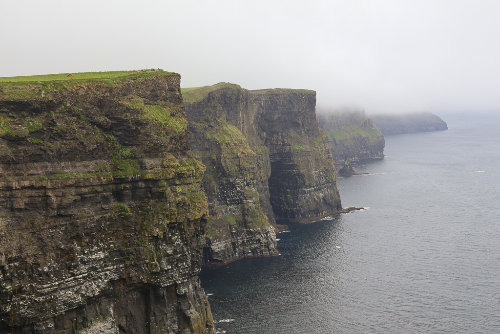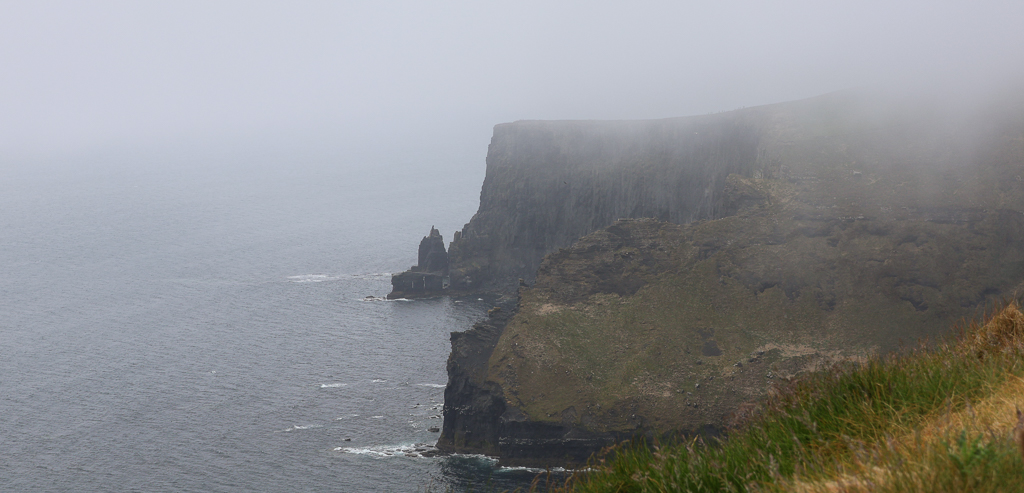 여행할 때 흔히 날씨는 복불복이라 말한다. 스코틀랜드와 아일랜드 여행을 계획하며 가장 걱정했던 것이 바로 날씨였다. 바람부는 쌀쌀한 날씨에 대비해서 겉옷을 더 꾸려 왔는데 그동안 예상외로 날씨가 너무 좋아서 별로 필요가 없었다. 그런데 모허 절벽에 도착하니 안개가 자욱하고 비까지 오기 시작한다. 모처럼 두꺼운 겉옷에 비옷까지 입었지만 빗발은 점점 세지니 구경도 제대로 못하고 사진 몇 장 찍다가 말았다.