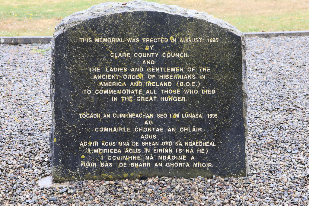 모허 절벽을 보고 번라티 성으로 가는 길에 Ennistymon이라는 작은 마을 어귀에 있는 대기근(Great Famine 또는 Potato Famine) 추모비(Great Hunger Memorial)에 잠간 들렸다. 아일랜드는 19세기에 있었던 대기근으로 약 100만명이 아사하는 아픔을 겪었다. 당시 이 일대의 주민 2만여명이 숨진 병원 건너편에 세워진 추모비는 부모를 잃어 고아가 된 Michael이라는 4살짜리 아이에 대한 이야기를 담고 있어 가슴이 뭉클해진다.