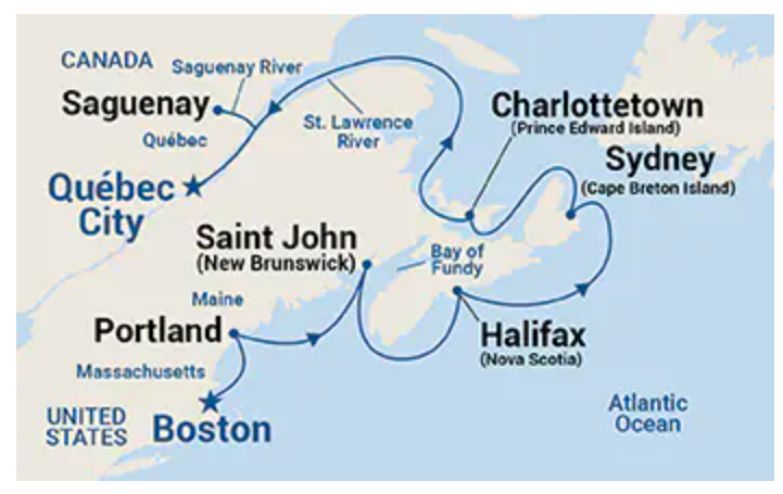 이십여 년 전에 가을 단풍여행으로 New England 지역을 다녀온 적이 있다. 미국은 포플러(aspen, 사시나무) 종류의 나무가 많아서 가을 단풍은 황금빛이 절대적이다. 그래서 우리에게 친숙한 붉은 단풍잎이 국기에 들어있는 캐나다, 특히 동부 캐나다를 다녀오려고 생각하고 있었다. 그러던 중 시기나 일정이 가을 단풍을 즐기기에 꼭 맞는 크루즈를 Princess Cruises에서 발견하여 가기로 하였다. 이번 크루즈는 Boston에서 출발하여 Portland, Saint John, Halifax, Sydney, Charlottetown, Saguenay를 거쳐 Quebec에서 끝나는 11일간의 일정이다. 참고로 1977년부터 1986까지 방영된 미국 TV 드라마 시리즈 Love Boat의 무대로 Pacific Princess가 사용되어 Princess Cruises가 유명세를 타는 계기가 되었다.
