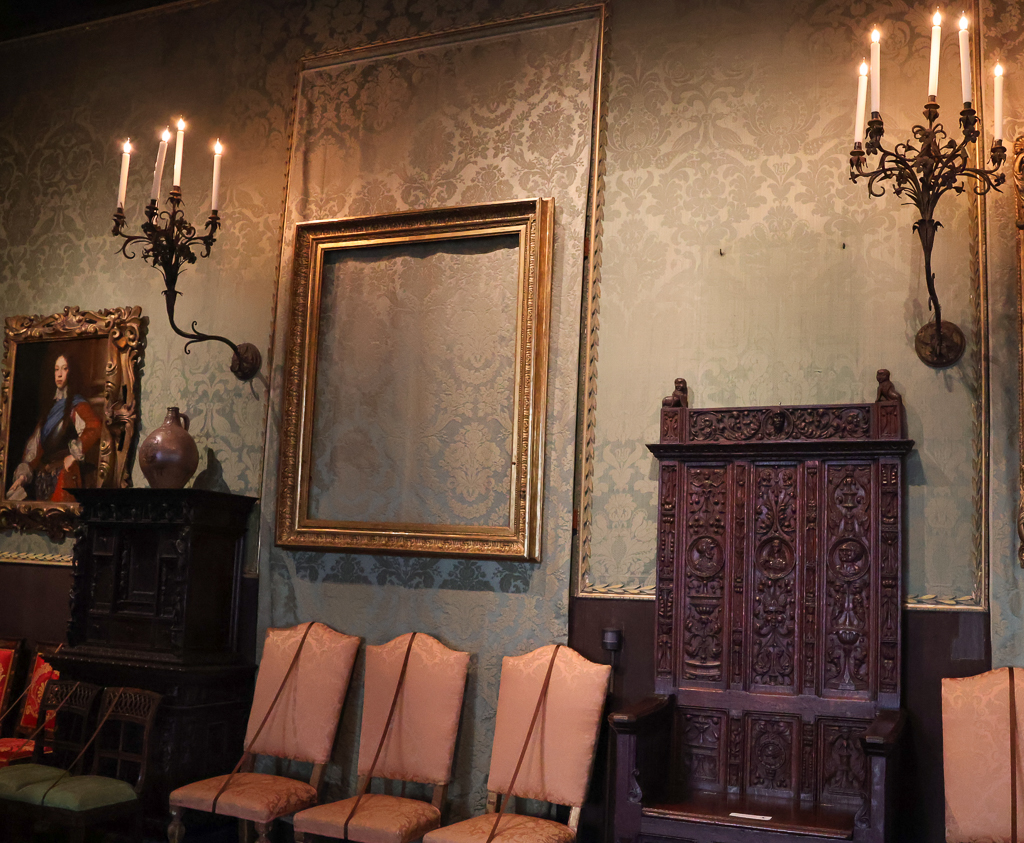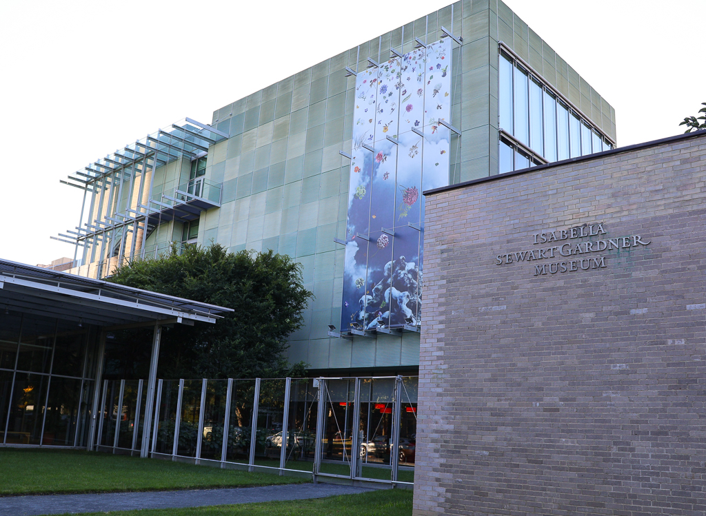 예술작품 수집가이자 자선 사업가였던 Isabella Stewart Gardner는 1898년부터 약 3년간에 걸쳐 15세기 베니스 풍의 미술관을 건축하였다고 1903년에 일반에 공개되었다. Gardner는 예술가 및 예술학자들을 박물관으로 초대하여 개인전, 음악회 및 강연회 등을 개최하였다. 그는 소장품을 대중들이 즐길 수 있고 박물관이 예술교육에 기여하기를 유서를 통하여 천명하여 현재까지 그렇게 사용되고 있다. 1990년에 경찰로 위장한 강도들이 미술관으로 잠입하여 시가 총 5억불에 상당하는 13개의 그림들을 훔쳐갔다. 액자에서 그림만을 잘라내어 훔쳐갔는데 미술관 측에서 5백만불의 보상금을 내 걸었지만 아직도 발견되지 않고 있다. 이 사건은 가장 값비싼 물건들을 도난당한 사건으로 기록에 남게 되었다. 미술관 측은 상징적으로 빈 액자들을 2층에 있는 Dutch Room에 지금도 전시하고 있다. Isabella Stewart Gardner Museum website home page, 미술관 안내 책자, 전시실 안내.