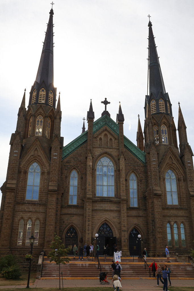 배에서 본 샬럿타운 항구와 시내배에서 본 샬럿타운 항구와 시내 – St. Dunstan’s Basilica의 뾰족탑이 보인다샬럿타운 크루즈 항샬럿타운 크루즈 항샬럿타운 항만 건너에 보이는 St. Dunstan’s BasilicaJohn Hamilton Grays 동상 – 1864년 Charlottetown Conference에 참석했던 동명이인 John Hamilton Gray 기념동상. 한 사람은 PEI 지사, 다른 한 사람은 New Brunswick 정치인으로, 두 사람 다 보수적이었으며 캐나다 연방을 지지하였다. 동상은 두 사람이 만나서 캐나다 연방에 대한 구상을 나누는 장면이며, 조각가 Nathan Scott의 작품으로 2014년에 제막되었다.St. Dunstan’s Basilica – 원래 성당이 화재로 소실된 후 20세기초에 고딕 복고풍으로 재건축되었다. Dunstan은 10세기에 캔터베리 대주교였으며 영국교회 개혁과 수도사의 삶을 회복시켰으며, 11세기초에 성자의 반열에 올랐다.St. Dunstan’s BasilicaSt. Dunstan’s Basilica, 내부St. Dunstan’s Basilica, 천장과 파이프 오르간St. Dunstan’s Basilica, 파이프 오르간 – 2012년에 설치된 Casavant Frères 오르간으로 4000여개의 파이프로 구성되어 있다.St. Dunstan’s Basilica, 중앙제단St. Dunstan’s Basilica, 십자가를 지신 예수님한창 공사 중인 PEI 지역의회 건물 – 그리스와 로마의 영향을 받은 건물로 1847년부터 사용되었다Brighton Beach Range Front Light – 19세기말에 4각형 탑의 형태로 지어진 목조 등대Fort Edward – 19세기초에 영국군이 샬럿타운 방어를 위해 세운 요새에 Prince Edward Battery가 주둔했던 포대샬럿타운 방어를 위한 포대 배치도Beaconsfield Historic House – 1877년에 빅토리아 풍으로 지어진 당시 최고로 우아했던 집