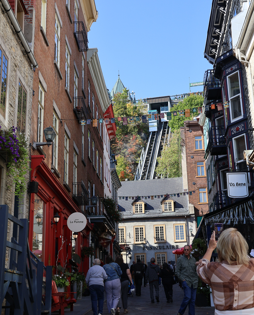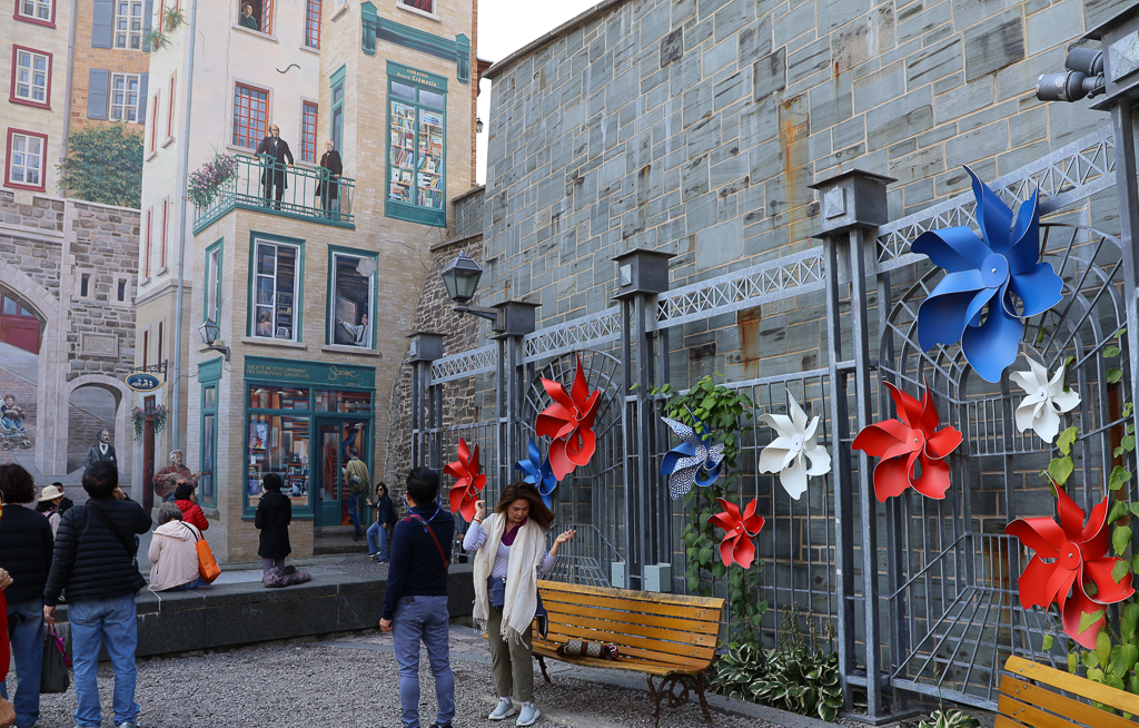 Place Royale, Quebec City – Samuel de Champlain이 1608년에 정착지로 자리잡은 곳. 가운데에 당시 불란서 왕이었던 루이 14세의 흉상이 있다.Notre-Dame-des-Victoires Church, Quebec City – Samuel de Champlain이 살던 집터에 1688년에 세워진 성당으로 퀘벡 전투 때 파손되어 1763년에 재건되었다.Mural of Quebecers, Quebec City – 1999년에 12명의 화가들에 의해 완성된 벽화로 Jacques Cartier와 Samuel de Champlain를 비롯한 15명의 퀘벡 지역 역사에서 빼놓을 수 없는 인사들이 그려져 있다. 이러한 14개의 벽화들이 주제별로 퀘벡 시내 여기저기에 있다. 자세한 정보는 퀘벡 시 website에서.Mural of Quebecers, Quebec CityUpper Town으로 올라가는 Funicular, Quebec CityChâteau Frontenac, Quebec City – Lower Town에서 본Château Frontenac, Quebec City – Lower Town에서 본Prescott Gate와 그 위로 보이는 Luis Stephen St-Laurent Building, Quebec City – 1873년에 중앙우체국으로 건축되었고 지금은 연방정부청사로 쓰이고 있다.Château Frontenac, Quebec City – 1893년에 건축된 불란서 전형적인 Château 풍의 호텔건물. 역사 및 예약에 관한 자세한 정보는 호텔 website에서.Château Frontenac 로비 일부, Quebec CityChâteau Frontenac 통로, Quebec CitySamuel de Champlain 동상, Quebec CityFountain Monument of Faith, Quebec City – 고딕 풍의 분수로 선교사들이 최초로 도착한지 300주년을 기념하여 1916년에 세워졌다.Fountain Monument of Faith, Quebec City동상 Porter les songes â la limite du ciel (To carry dreams to the edge of the sky), Quebec City – 뿌리가 대포알을 감싸고 자라서 Cannonball Tree라는 별명이 붙은 120년된 느릅나무가 고사위기에 처해 안전상 제거하고, 그 자리에 2024년에 세워진 동상으로 Paryse Martin의 작품이다. 대포알을 감쌌던 뿌리 부분을 그대로 묘사하였다. 나무 위의 여인상은 인간과 자연의 조화 등을 표현하고 있다.Rue Sainte-Anne 거리 풍경, Quebec City – 식당과 카페가 많이 있다Rue du Tresor 거리 풍경, Quebec City – 파리의 몽마르트르를 연상시키는 화가들과 그림들이 몰려 있는 골목길Rue De Buade 거리 풍경, Quebec City – 시청광장과 퀘벡 시청 건물이 보이고 오른쪽에 Monument Cardinal Taschereau가 보인다.Monument Cardinal Taschereau, Quebec City – 캐나다 최초의 추기경Cathedral-Basilica of Notre-Dame de Quebec, Quebec City – 1633년에 지어진 작은 교회자리에 성당이 세워졌는데 화재로 두 번 소실되었고 현재의 성당은 1843년에 완공되었다.Rue Saint-Jean 거리 풍경, Quebec CityRue des Ramparts Two Cannons, Quebec City – 퀘벡 시 방어선, Old Coastal Defense & Fortification의 일환이었던 대포Château Frontenac 야경, Quebec City